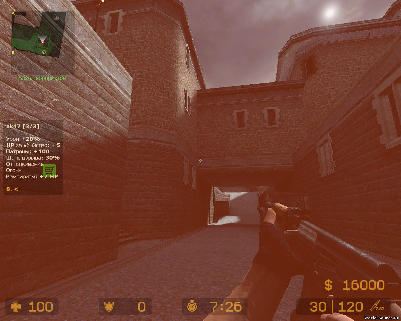 - дополнительный урон в процентах - hp за убийство врага - hp за ранение врага (вампиризм) - огонь - шок (трясется экран) - замедление врага - дополнительные патроны - взрыв врага - отталкивание (не работает на CSGO) - нет повреждений от мира - процент невидимости (не работает на CSGO) - скорость - гравитация - регенерация hp - аура (видят все, кроме владельца)